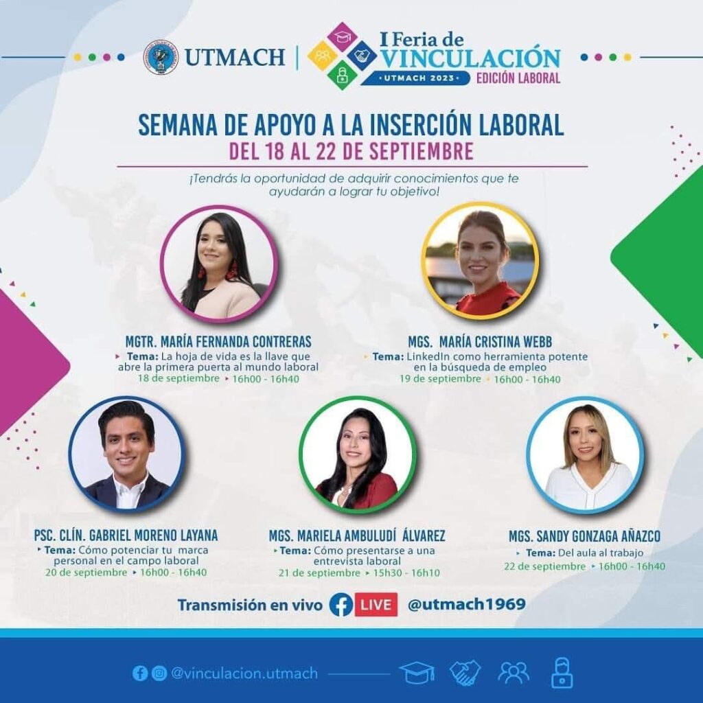 Durante esta semana se llevaron a cabo talleres, charlas y capacitaciones enfocadas en preparar a los estudiantes y graduados para el mundo laboral. Se trataron temas como elaborar una Hoja de Vida, entrevistas y habilidades blandas, con el propósito de potenciar la empleabilidad.